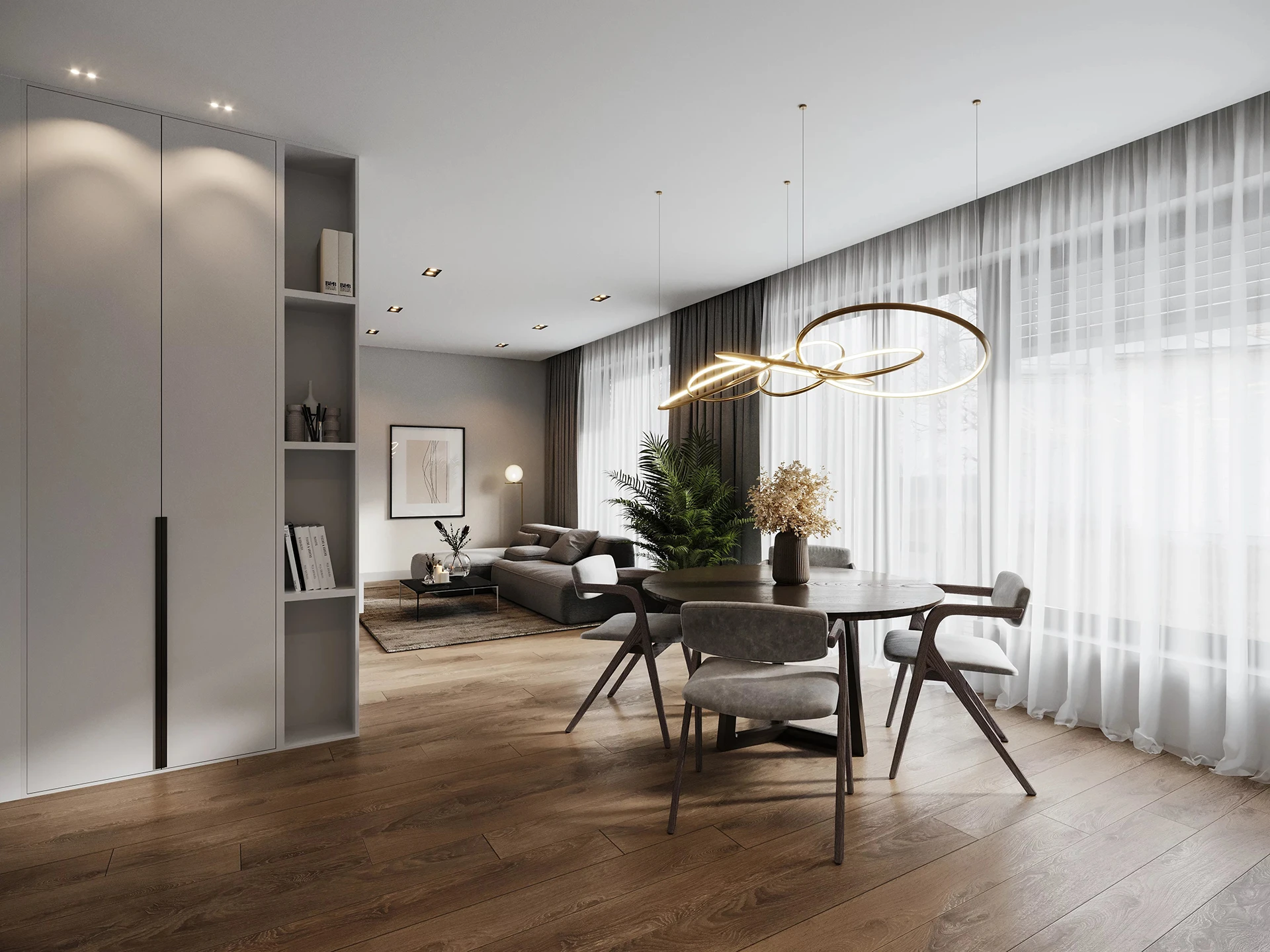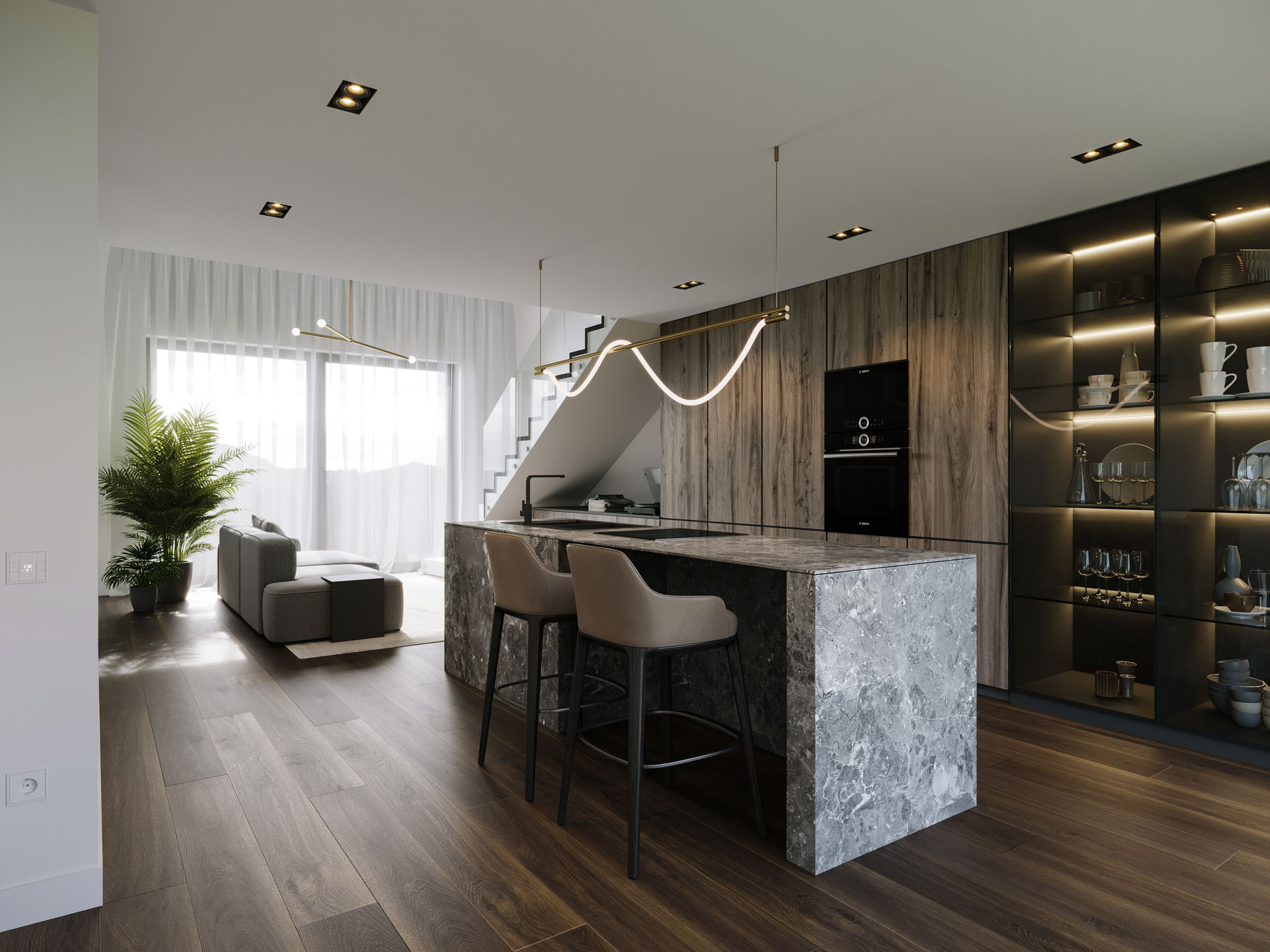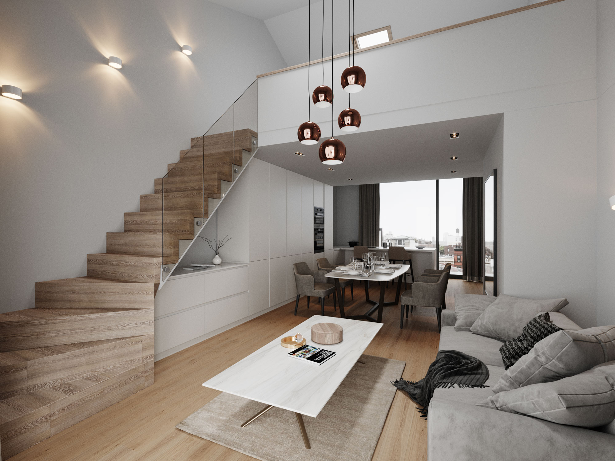 Les volumes ouverts et les espaces lumineux contribuent à un lieu de vie des plus agréables dans une petite copropriété à taille humaine.
